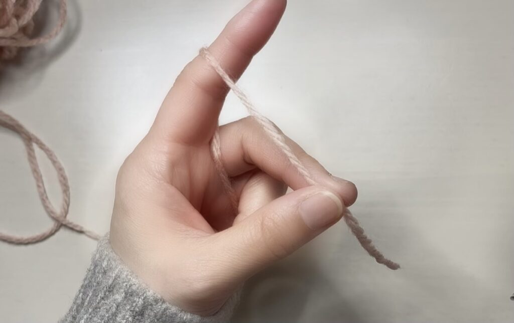 ✔ きつい時は小指に一周巻かない(太い毛糸は巻かない方が編みやすいかも)