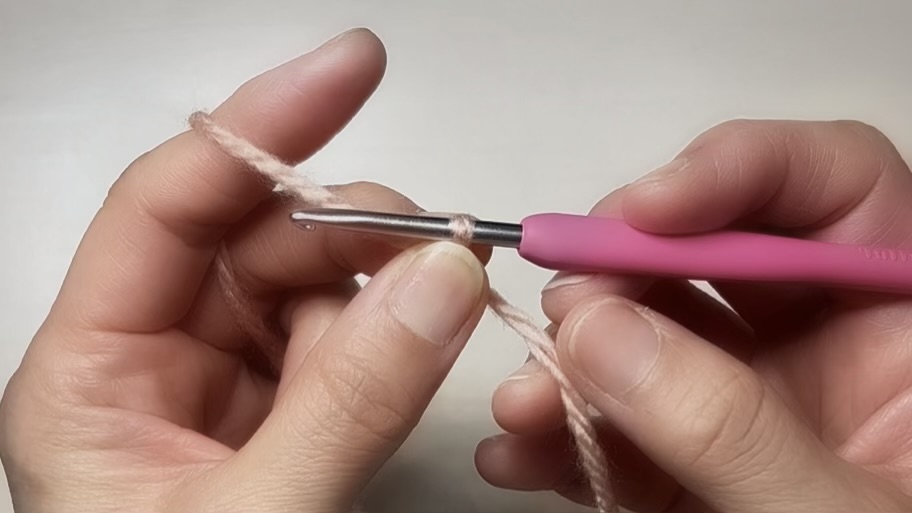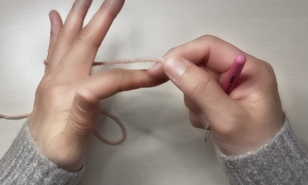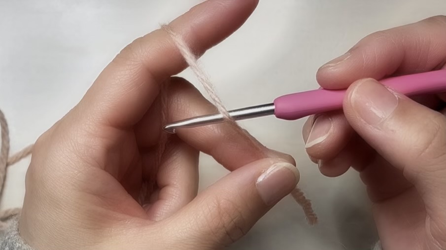 利き手でかぎ針を持ち、糸は逆の手に持つことになります。