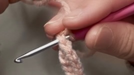 この押さえてる部分は後の細編みの頭になります。